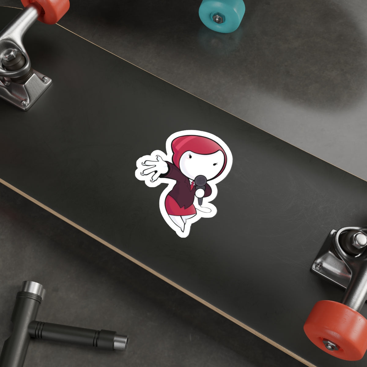 Sticker is die-cut with a matte finish.